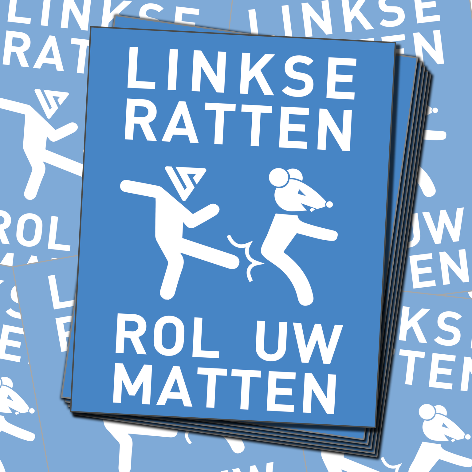 De linkse rattenplaag wordt op geen enkele manier beter bestreden dan door hen te verplichten tot het rollen van hun matten. Bestel daarom deze 50 blauwe exemplaren opdat linkse ratten ze zeker zouden zien!