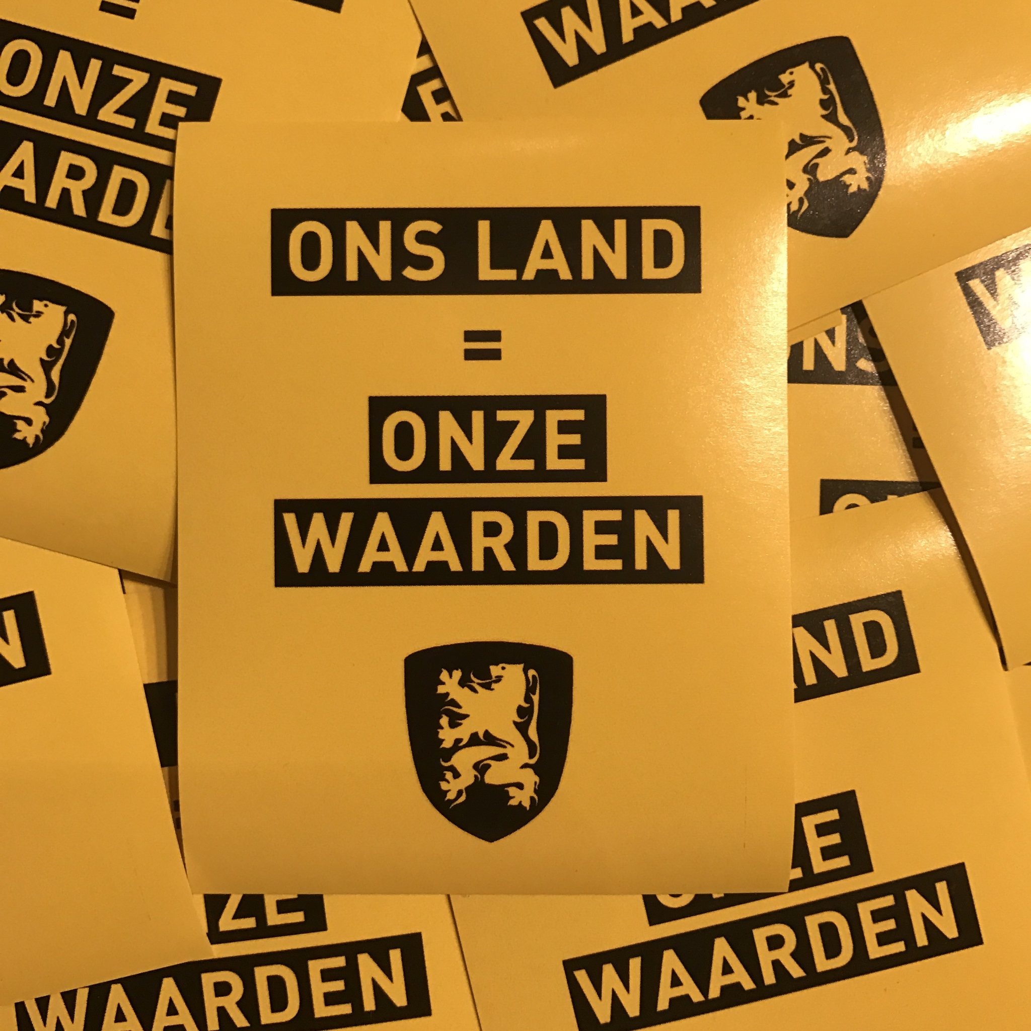 50 exemplaren van de sticker “Ons land, onze waarden”.